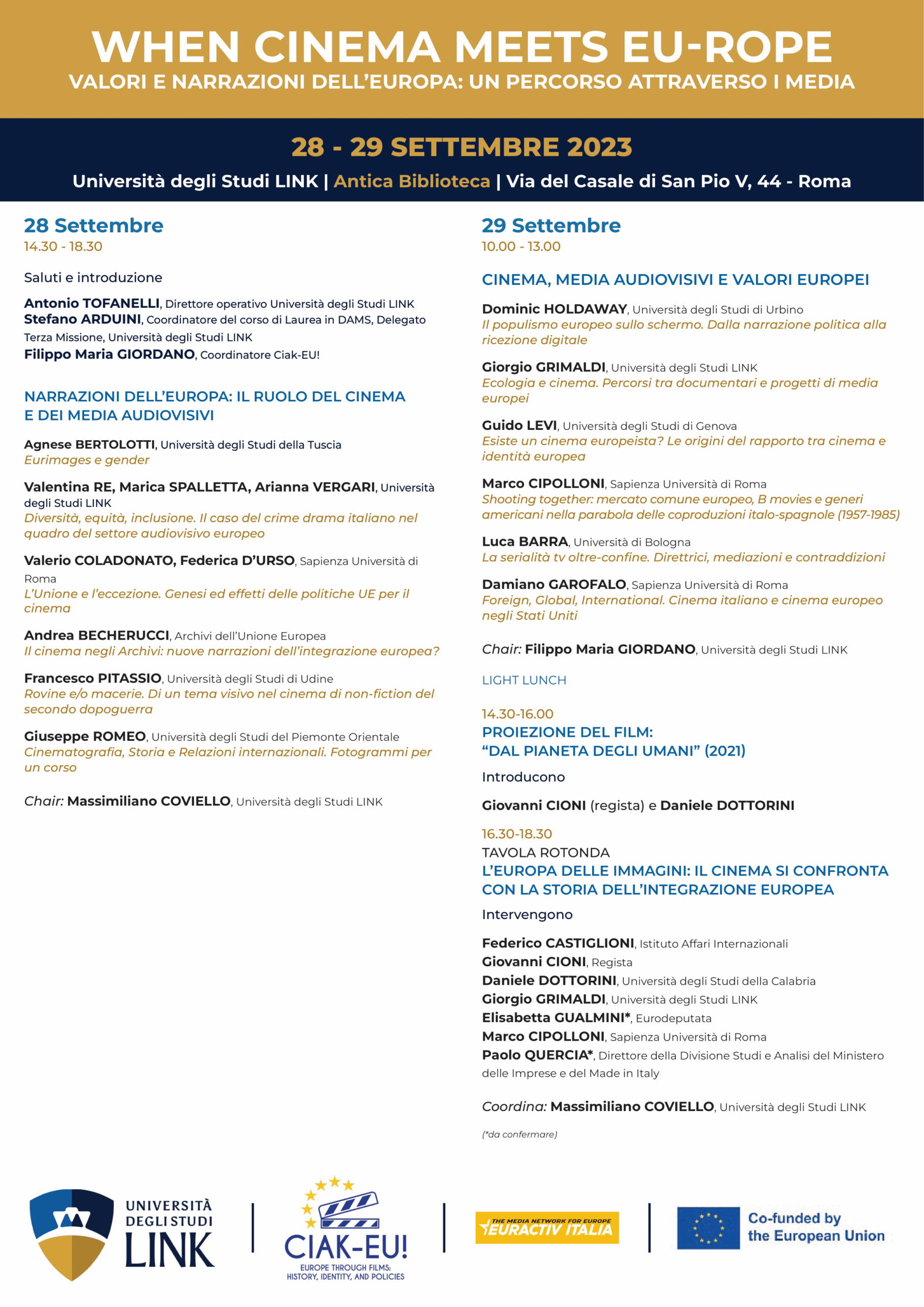 Convegno internazionale Re-examining the past and envisioning the future of Italian cinema and media, The American University of Rome, 13-15 giugno 2024