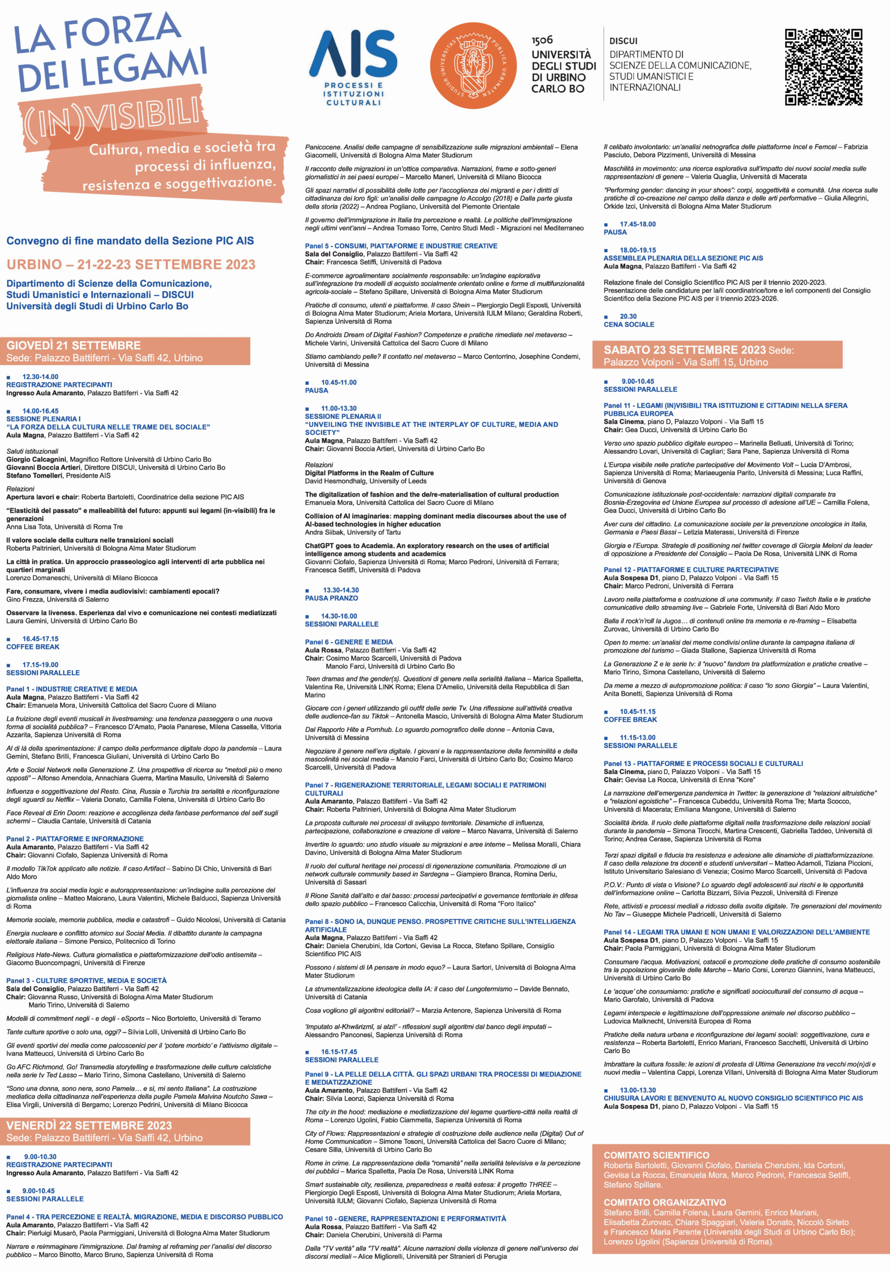 Convegno nazionale Screen Cultures Reloaded. Parole chiave per la ricerca sui media in Italia, SISCC, CUC / Università di Urbino, 10-11 luglio 2024
